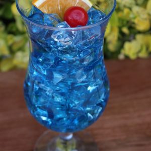 Blue Hawaiian drink with a pineapple wedge and a cherry. Approx. 8″ X 3″