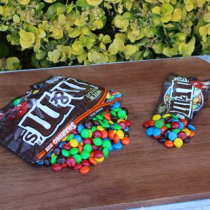 Spilled large bag of M & M’s. Each item is approximately 11″ x 5″